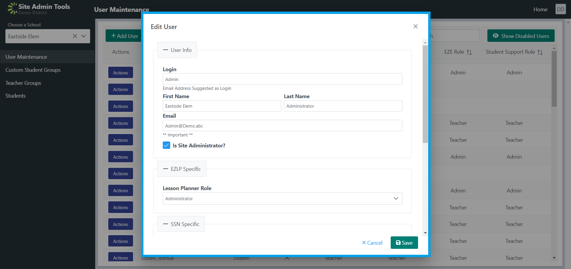 5. Within the 'edit' portal, you have the ability to change the email address associated with the user, the name associated with the user, and the specific role the user has for each Pathways product.