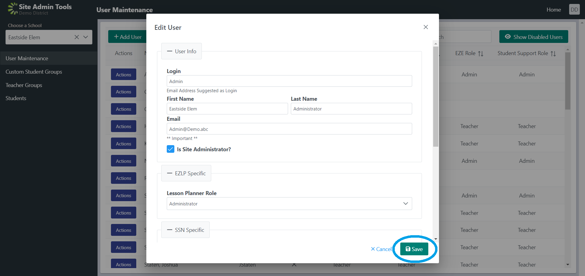 6. When you are finished making desired edits to the user account, choose 'Save' at the bottom right hand side of the screen.