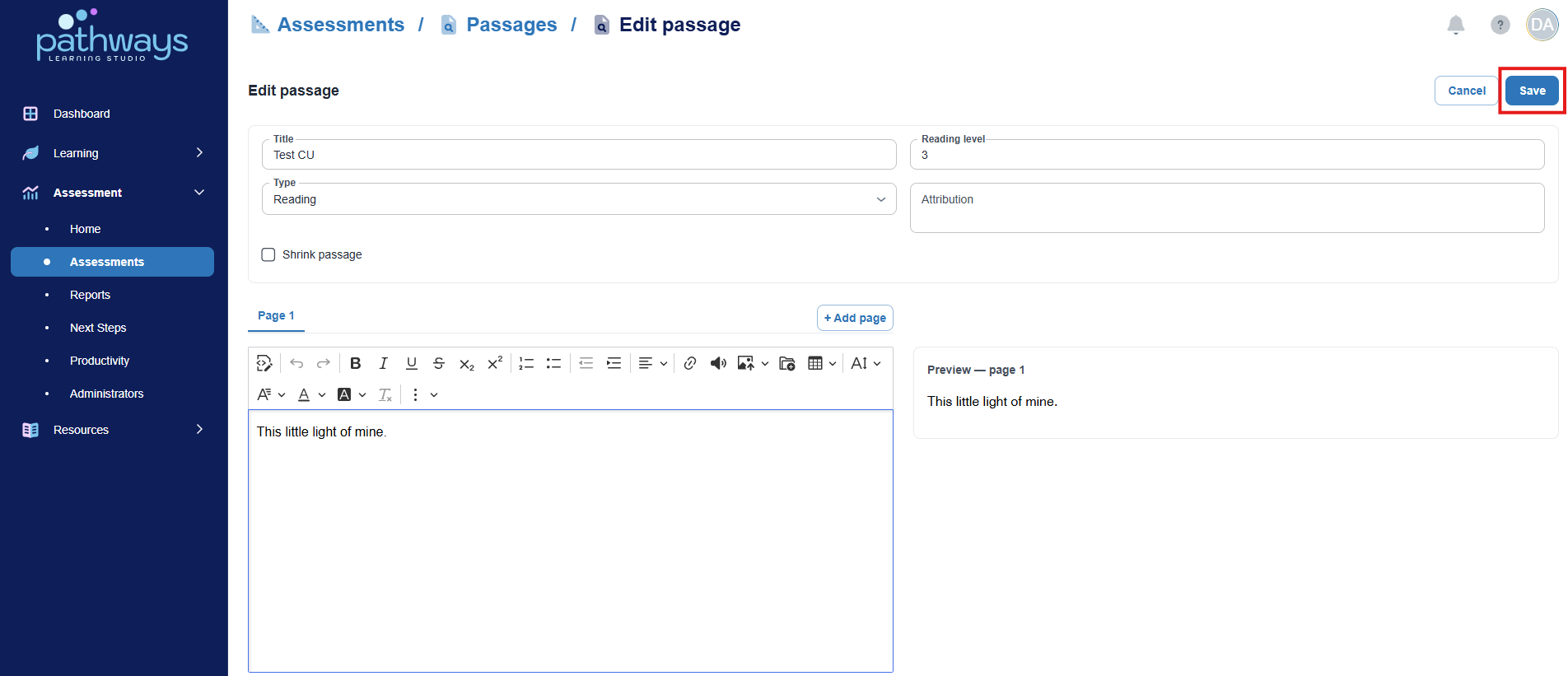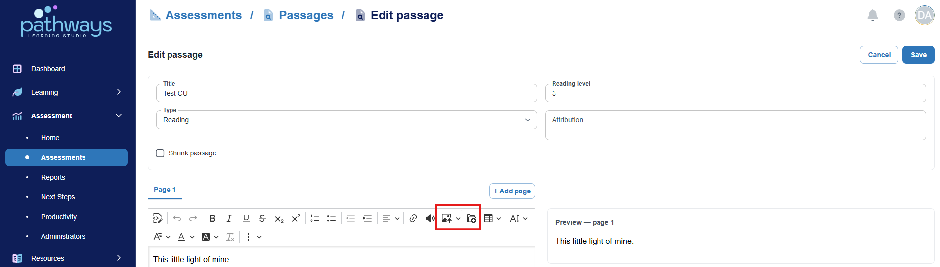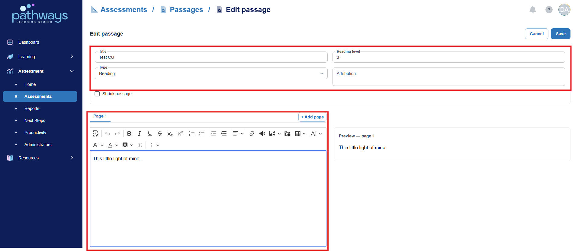 7. Fill in all required passage details, copy and paste your passage into the text box.