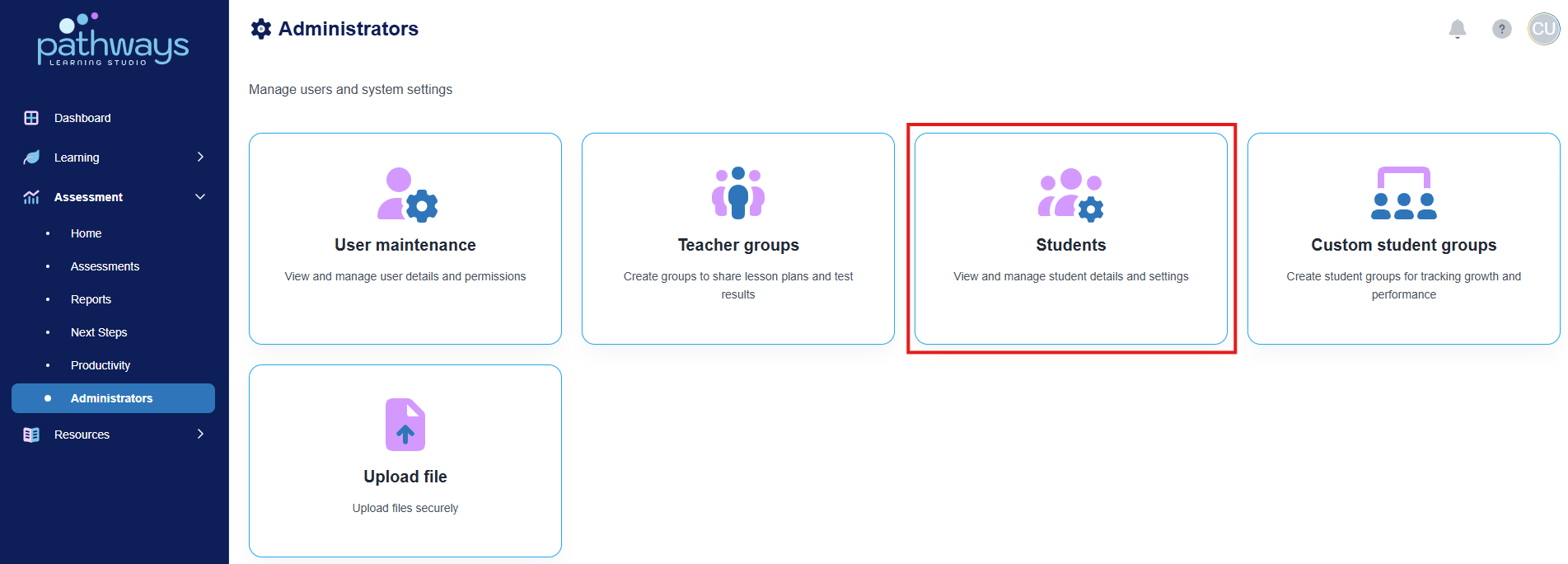 4. Select 'Students' from the Administrator dashboard.