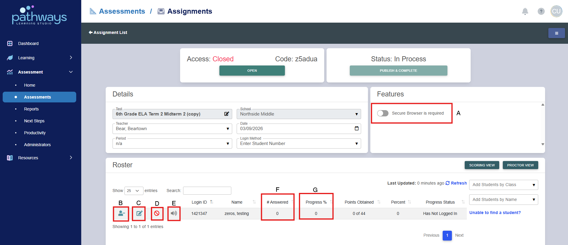 If the folder icon is not present, this means a district level administrator has made the assessment private.