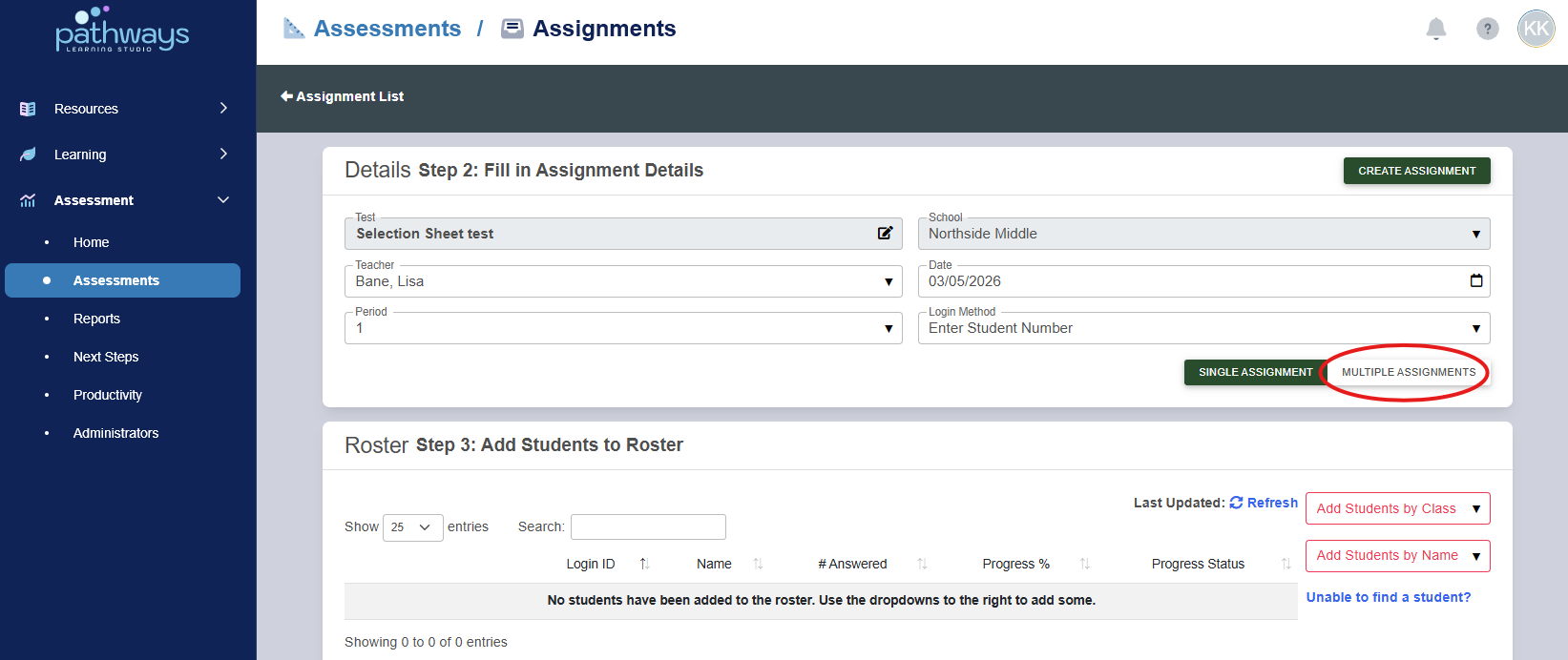 Pathways Assessment: Batch Assigning an Assessment